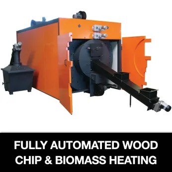 Heating Heat Wood Chip Woodchip Biomass Boiler Heat Furnace Wood Propane Oil Ventilation Humidity Control Climate Renewable Energy Carbon Neutral Low Emissions High Efficiency Environmentally Friendly Sawmill Forestry Green House Greenhouse Poultry Chicken Bird Health Hog Pig Animal Comfort Farm Machinery Equipment New Product Chipper Woodchipper